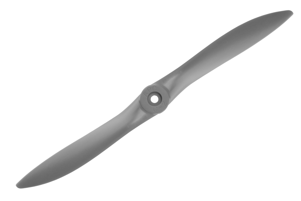 APC propellers are injection molded from composite materials using long glass fibers or long carbon fibers with a Nylon matrix.