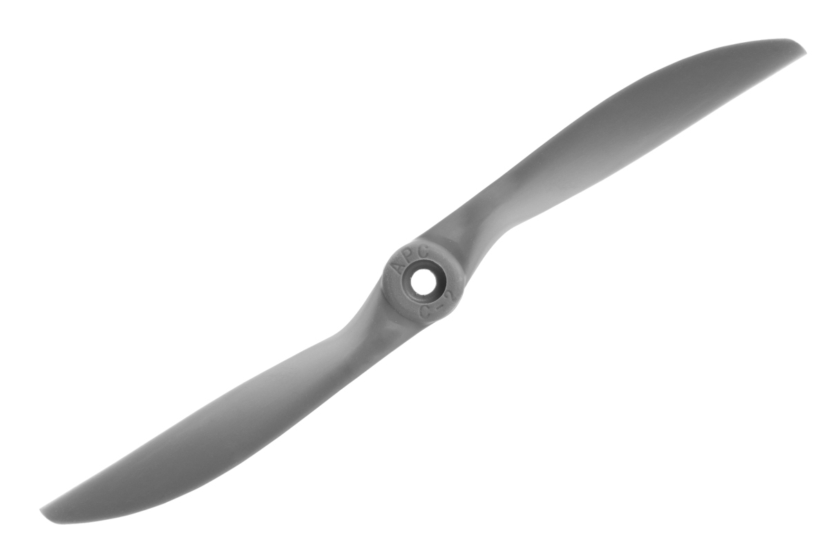 APC propellers are injection molded from composite materials using long glass fibers or long carbon fibers with a Nylon matrix.