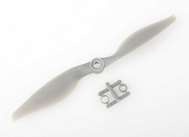 APC propellers are injection molded from composite materials using long glass fibers or long carbon fibers with a Nylon matrix.