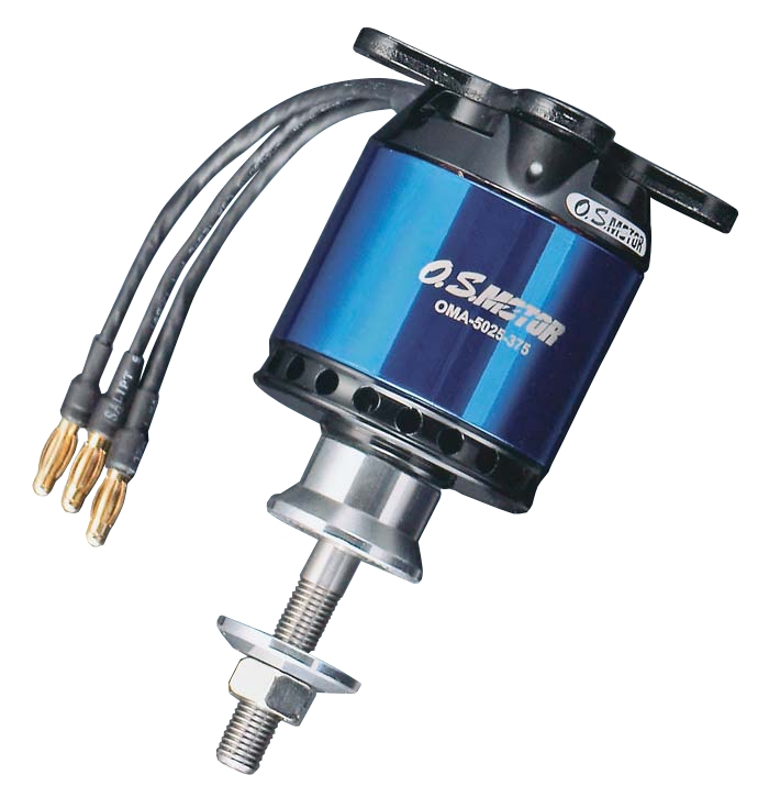 Brushless electric motor, diameter 50mm, length 57,5mm, weight 405g, 375 rpm. on V, power supply Lixx 7-8s, shaft 6 mm, controller 70-90A, recommended propeller “15×8 “, power 1600W at 33,6V.