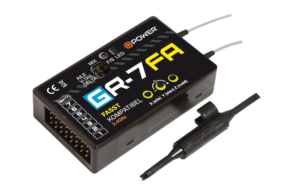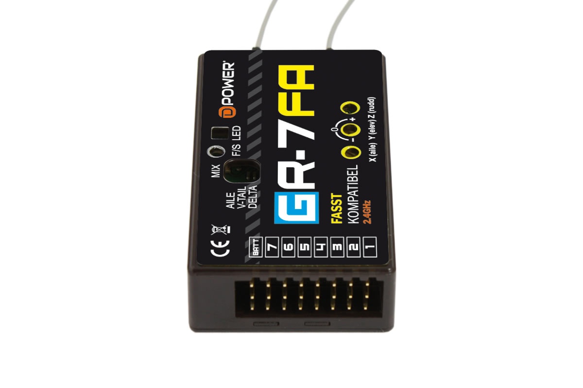 D-Power GR-7FA 2.4GHz receiver with 3x gyro, FASST compatible