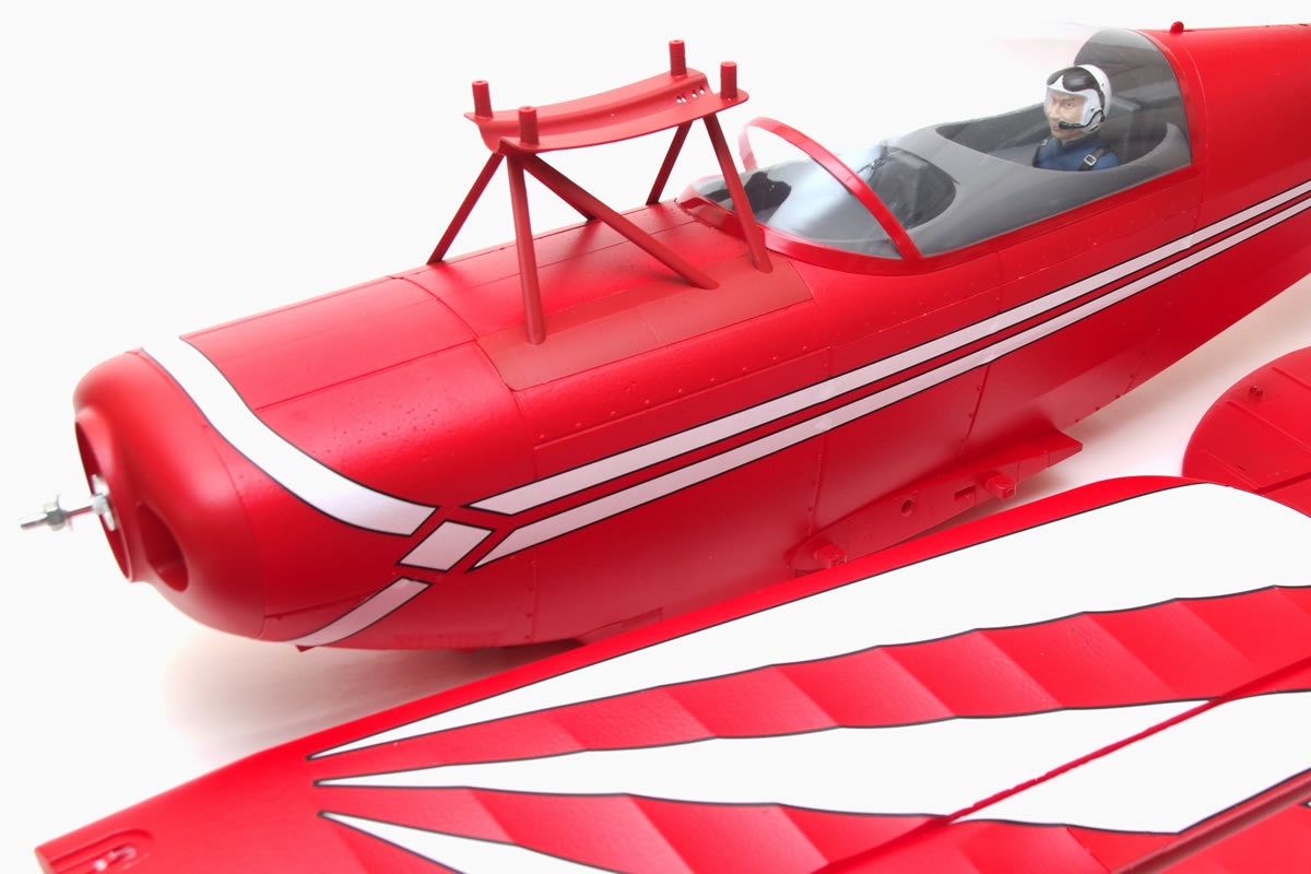 Powerful drive The powerful brushless motor, combined with the 50A brushless ESC, not only will the model perform exceptionally well, but your adrenaline will also soar. An oversized battery compartment accommodates a 6S LiPo battery, providing the pilot with ample power to execute even the most spectacular aerobatic maneuvers. Built-in Electronics: The Pitts V2 comes fully pre-installed and ready to fly right out of the box. The brushless motor, Hobbywing ESC, and 17g servos for ailerons, rudder, and elevator are all pre-installed. All that’s needed is a suitable battery and a radio control system.