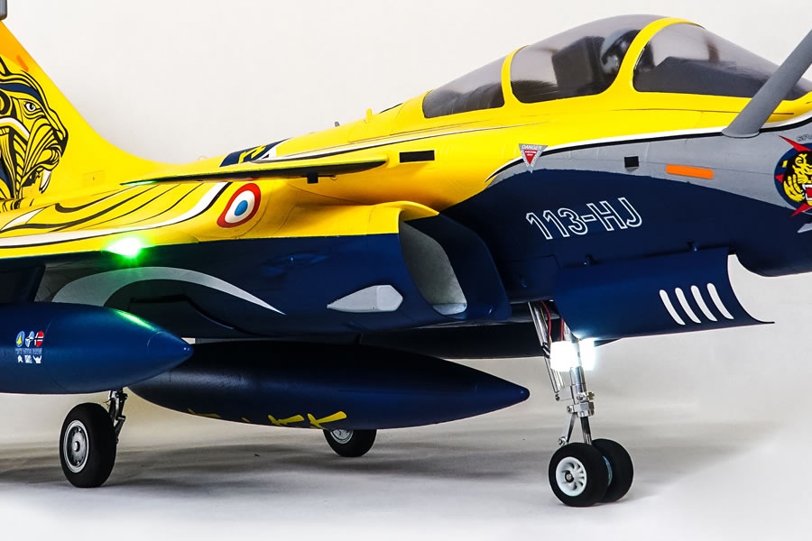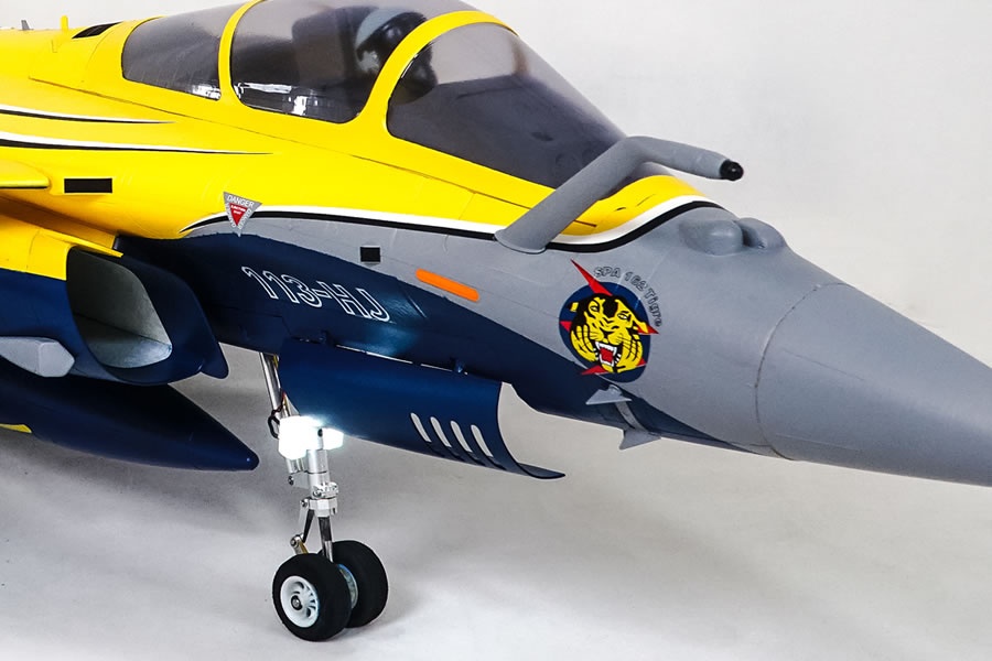Like the original Like its full-scale counterpart, the FMS 80mm Rafale features a realistic color scheme, numerous scale details and fully functional canards, making the aircraft truly unique compared to other 80mm EDF aircraft available on the market today. Designed to replicate both the look and performance of the real aircraft, FMS has incorporated decades of experience into the construction of the 80mm Rafale. Details such as the pilot figure, cockpit interior, fairings, removable armament, drop tanks, refueling probe, target acquisition sensor, etc., and dynamic features like functional LED navigation and landing lights, shock-absorbing electric retracts, functional canards and flaps make the model a real eye-catcher.