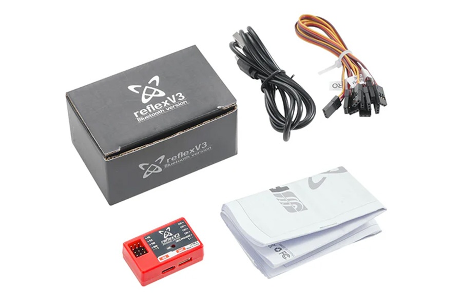 Scope of delivery • Reflex V3 Flight Controller • 4x 3-wire cable • USB charging cable • Directions