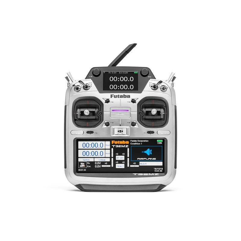 Eighteen-channel RC set Futaba FASSTest (18 / 12CH) and T-FHSS Air with telemetry, FASST (Multi / 7ch), S-FHSS 2.4GHz with the possibility of expansion to 32 channels (with 2 multiprop modules). HVGA