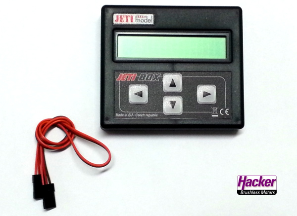 JETIBOX is a universal communication terminal, which can be used with any JETI products that are marked JETIBOX Compatible. JETIBOX Compatible products use powerful software to allow easy setup and reading of data using a simple menu driven display on the JETIBOX terminal.