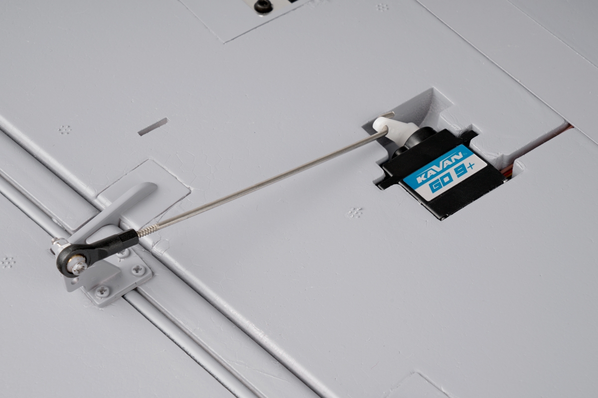 The empennage is made of EPO foam. The elevator and rudder servos are installed in the fin and fuselage.