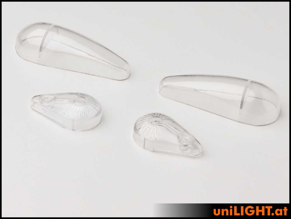 A set of different light caps of the 16mm and 18mm series as a spare part and for the self-construction of lights and covering of simple illuminants on your model. The caps are in contrast to deep-drawn products made of high quality polycarbonate, are impact resistant, significantly more temperature resistant and varnishable.
