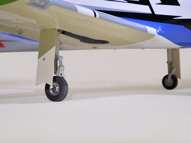 Electric retractable landing gear included. This latest version of the Phoenix Tucano comes with an electric retractable main landing gear and an electric retractable nose gear. The landing gear legs are made entirely of CNC-machined metal, and the gear box is also included.