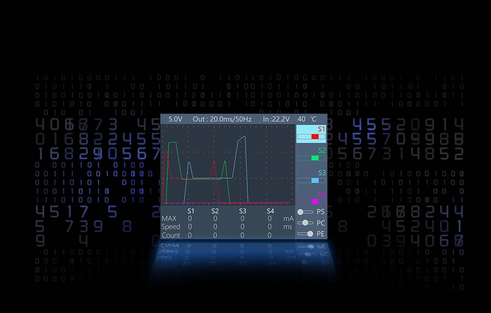 The ST8 is a product for testing servos, with up to 28V voltage output, 8-channel signal output, current measurement, curve display and other functions.