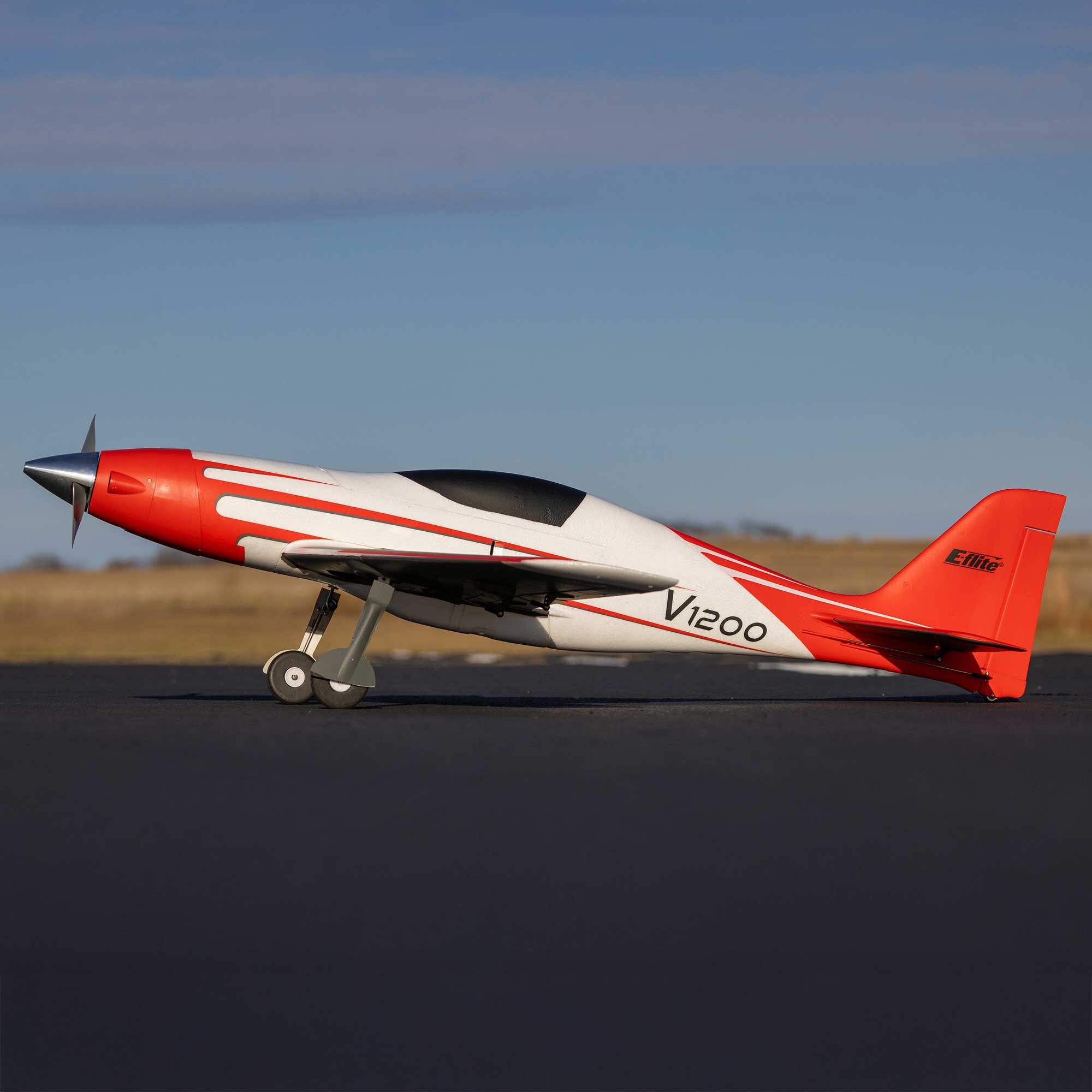 Speed and aerobatic enthusiasts will love the locked-in precision of the six digital, metal-geared servos and ball-link equipped linkages – especially when flying the BNF Basic version that’s equipped with a factory-installed AR637TA+ receiver featuring enhanced AS3X+ and optional-use SAFE Select technologies. Operational flaps improve slow-flight performance and allow for shorter takeoffs and landings. The updated and upgraded, more durable and reliable retracts with sprung wire struts let you fly from paved, packed dirt, or shorter grass surfaces at any suitably sized fields. The sleek airframe is composite-reinforced throughout and is molded in higher-density EPO that delivers a stronger and stiffer airframe with a smoother, dent and damage-resistant surface. Plus, it’s now factory-finished in a high-contrast trim scheme with a brighter color for improved visibility and orientation. No glue is required for assembly, and a total of six screws install the stabs, plus the one-piece wing that installs and removes easily for convenient storage and transport, thanks to hands-free connections. That means you can be ready to enjoy a flying experience unlike any other in less time than it takes to charge a battery. It’s easier than ever to fly fast and look good doing it with the V1200!