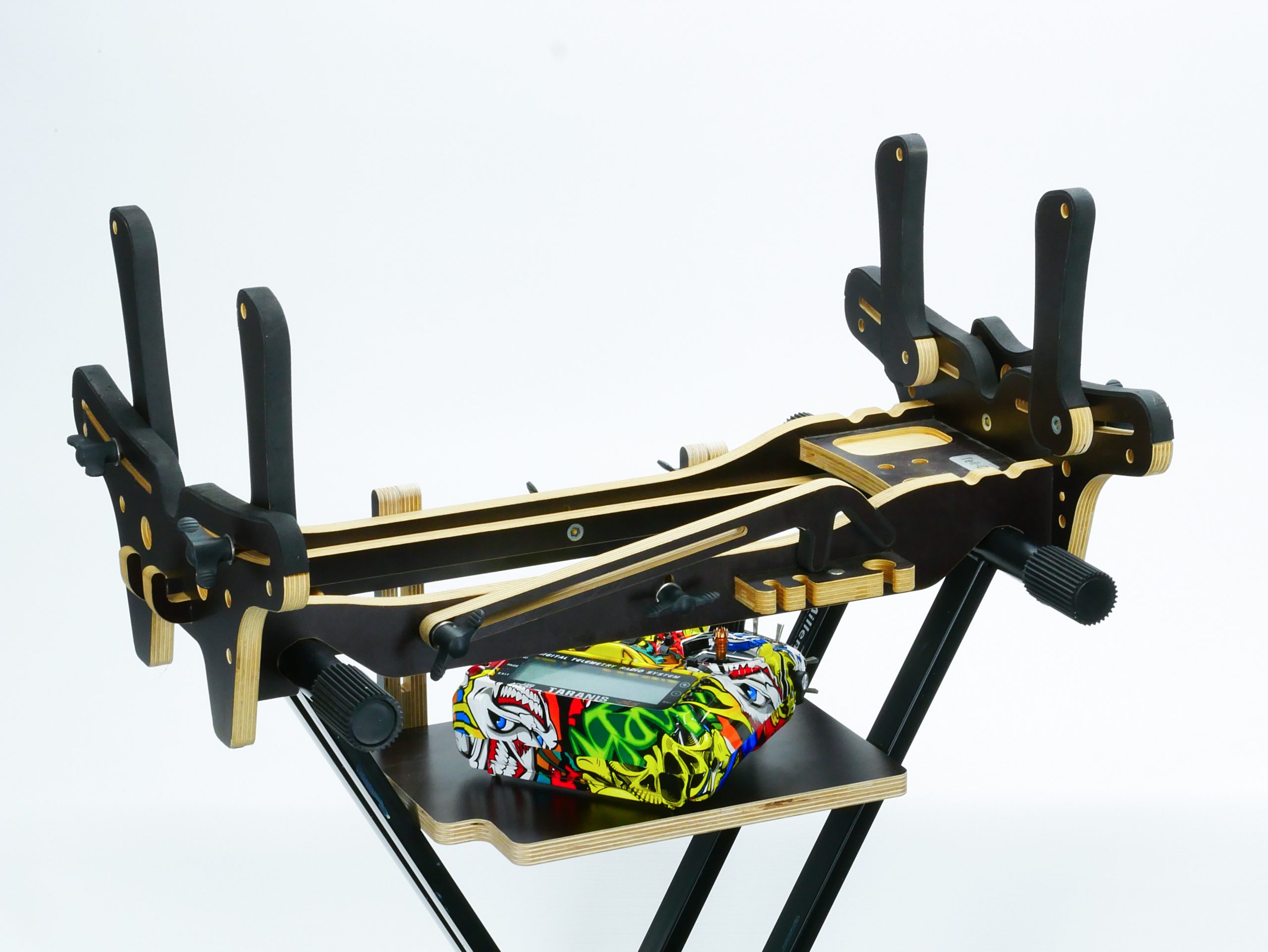 he middle shelf for the WingFix is the logical addition to the model stand. You get another storage option for everything you need on the airfield. For example, a charger can be placed on it or the canopy can be stowed away when the model is set up. Nothing ends up on the meadow anymore. Due to the height adjustment, the shelf can be put up for transport and does not have to be dismantled. The shelf is screwed onto existing threads in the middle section of the WingFix. The shelf has the size of 210 x 300 mm.